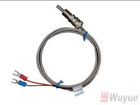 WRET-01型壓簧式熱電偶的結(jié)構(gòu)如圖所示,由保護(hù)管,安裝螺栓.鎖緊卡套,彈簧及熱電偶導(dǎo)線等組成。