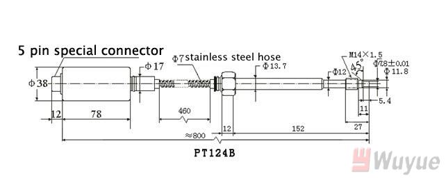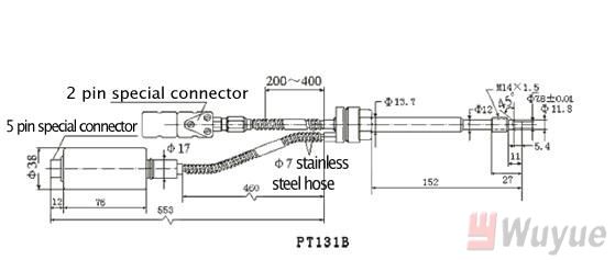 Metal hose melt pressure transmitter comes with a stainless steel hose between sensor and the probe, which improved its anti-interference performance by keeping the transmitter away from high temperature area. They are applied to measuring and controlling pressure of high temperature melt like plastics, rubber and fiber.