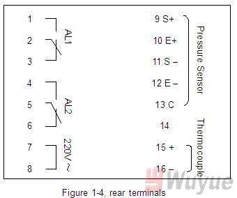 (1) Display Unit : double row structure with four LED digital bit, higher row for PV( measuring value) and lower row for SV( set value) .